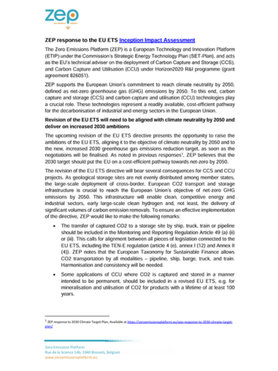 ZEP response to EU ETS Inception Impact Assessment