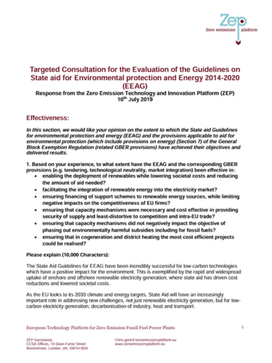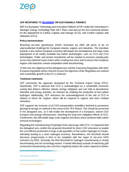 The Zero Emission Technology and Innovation Platform (ZEP) is the technical adviser to the EU on the deployment of Carbon Capture and Storage (CCS), and Carbon Capture and Utilisation (CCU), a European Technology and Innovation Platform (ETIP) under the Commission’s Strategic Energy Technologies Plan (SET-Plan). ZEP would like to commend the approach developed by theContinue reading “ZEP response to Technical Expert Group (TEG) report on EU Taxonomy”