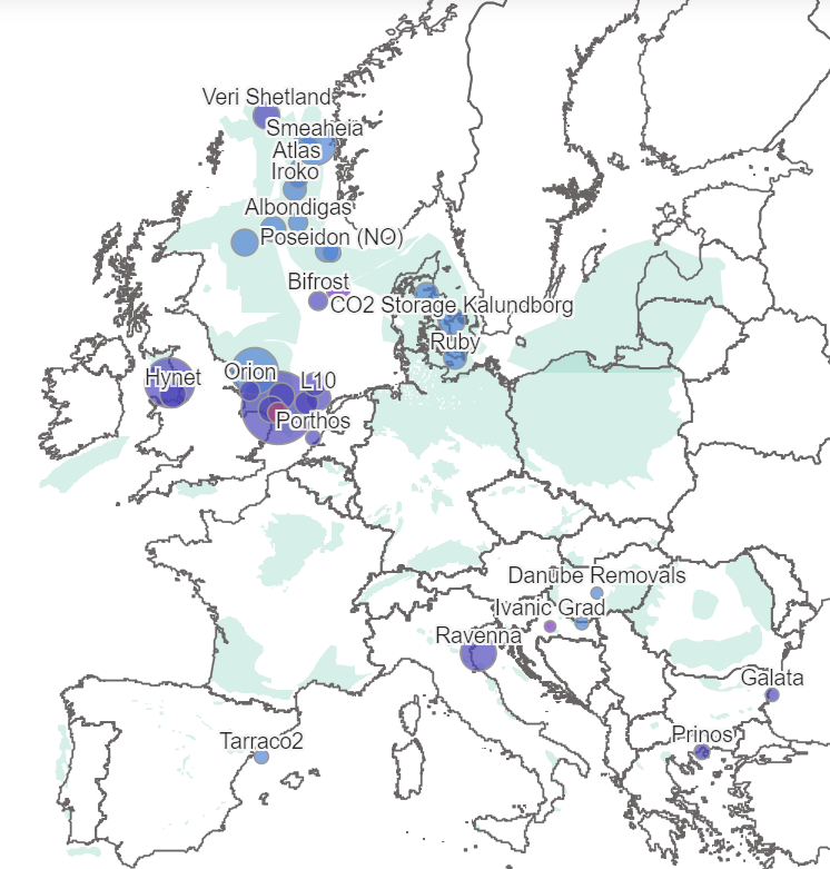 Clean Air Task Force. (n.d.). Tracking CO₂ storage project capacity in Europe. Clean Air Task Force. Retrieved from: https://www.catf.us/carbon-capture/storage-project-capacity-europe/